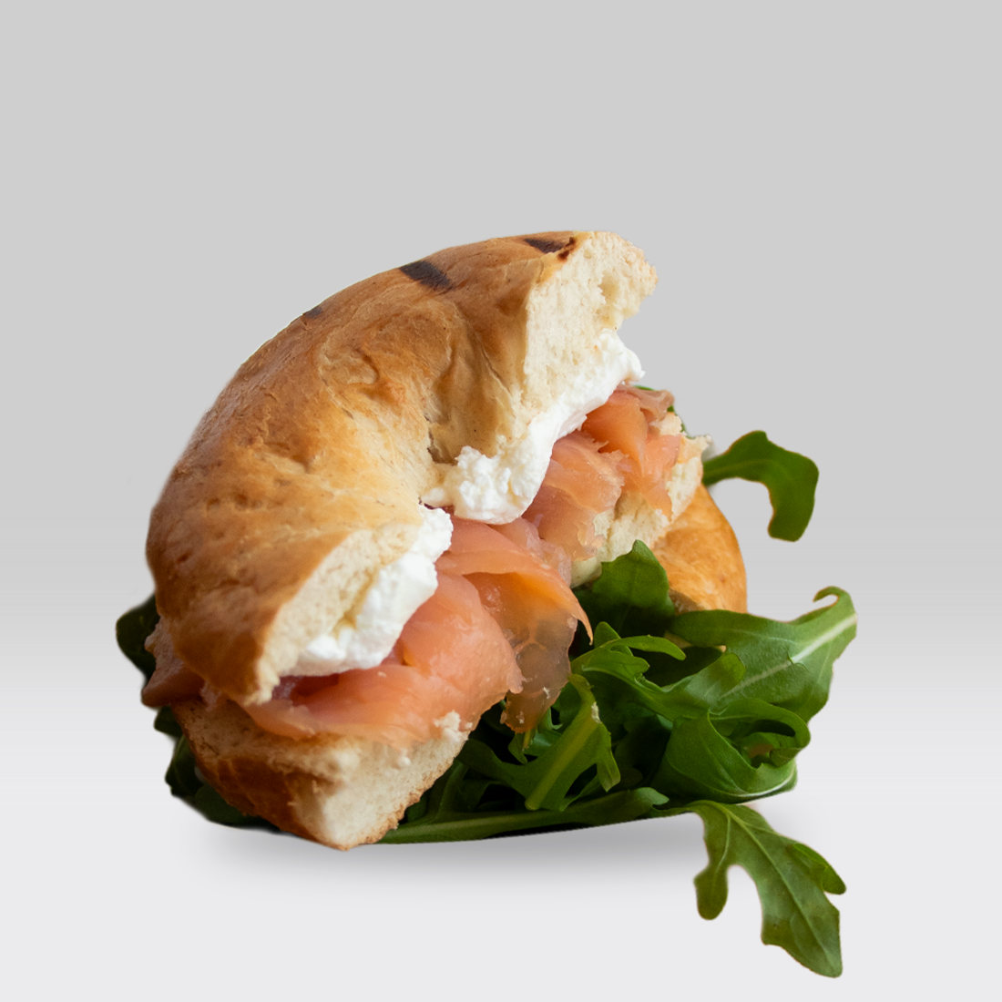 Just Philadelphia? No... It's got some lovely Smoked Salmon on too and a little bit of roquette in a soft, chewy, golden-crusted Bagel.