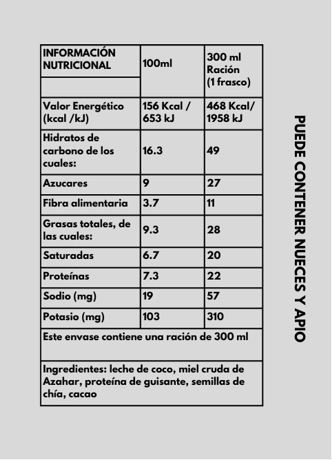 A rich, indulgent chia pudding made from coconut milk, chia seeds, raw cacao, orange blossom honey, and organic pea protein. Packed with fiber, antioxidants, plant-based protein, and healthy fats — all natural, cold-pressed, and free from additives.