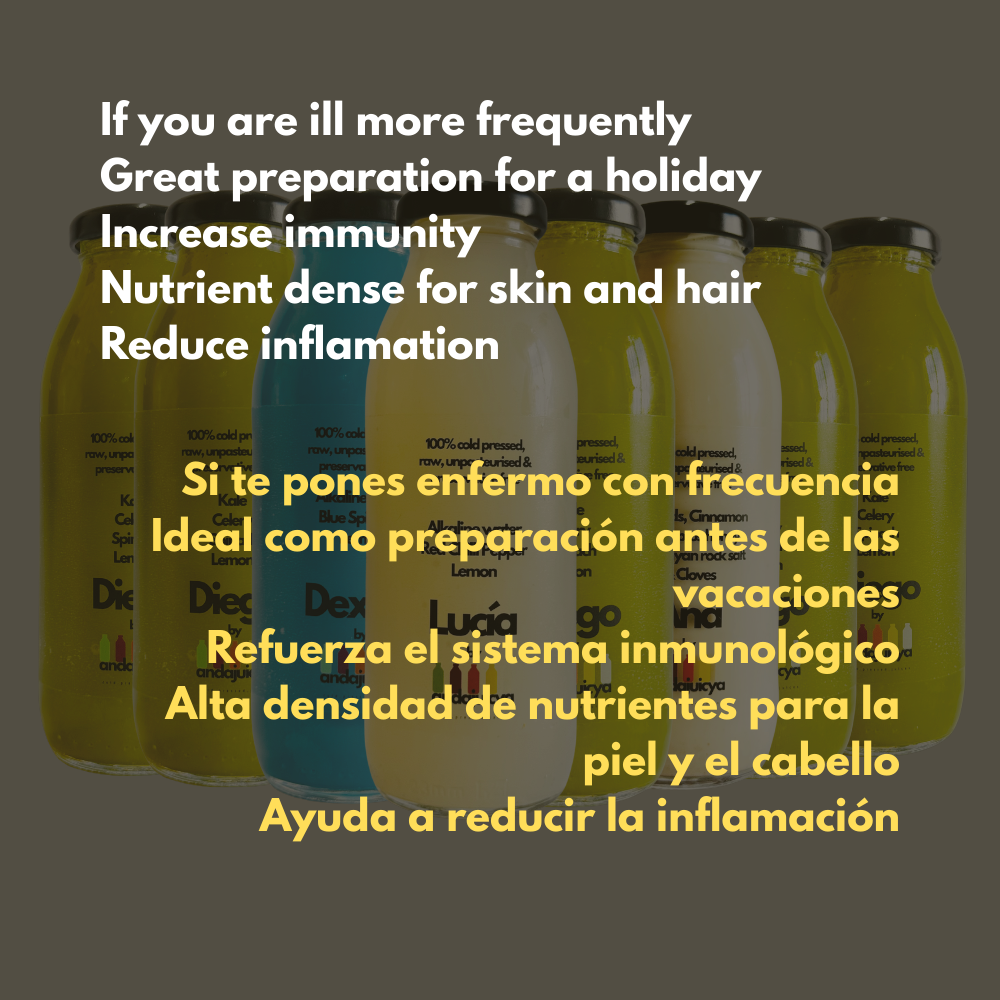 The combination of vitamin C and K , plus the abundance green leafs, gives you the same immune-boosting power you’d get from eating several kilos of fruit — all in a convenient cleanse.